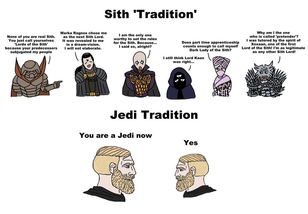 As I mentioned in the previous rule’s explanation, one of the greatest strengths the Jedi Order have had over the Sith is their unity, which gave rise to millennia of tradition and order. However, this is actually a weakness in disguise.